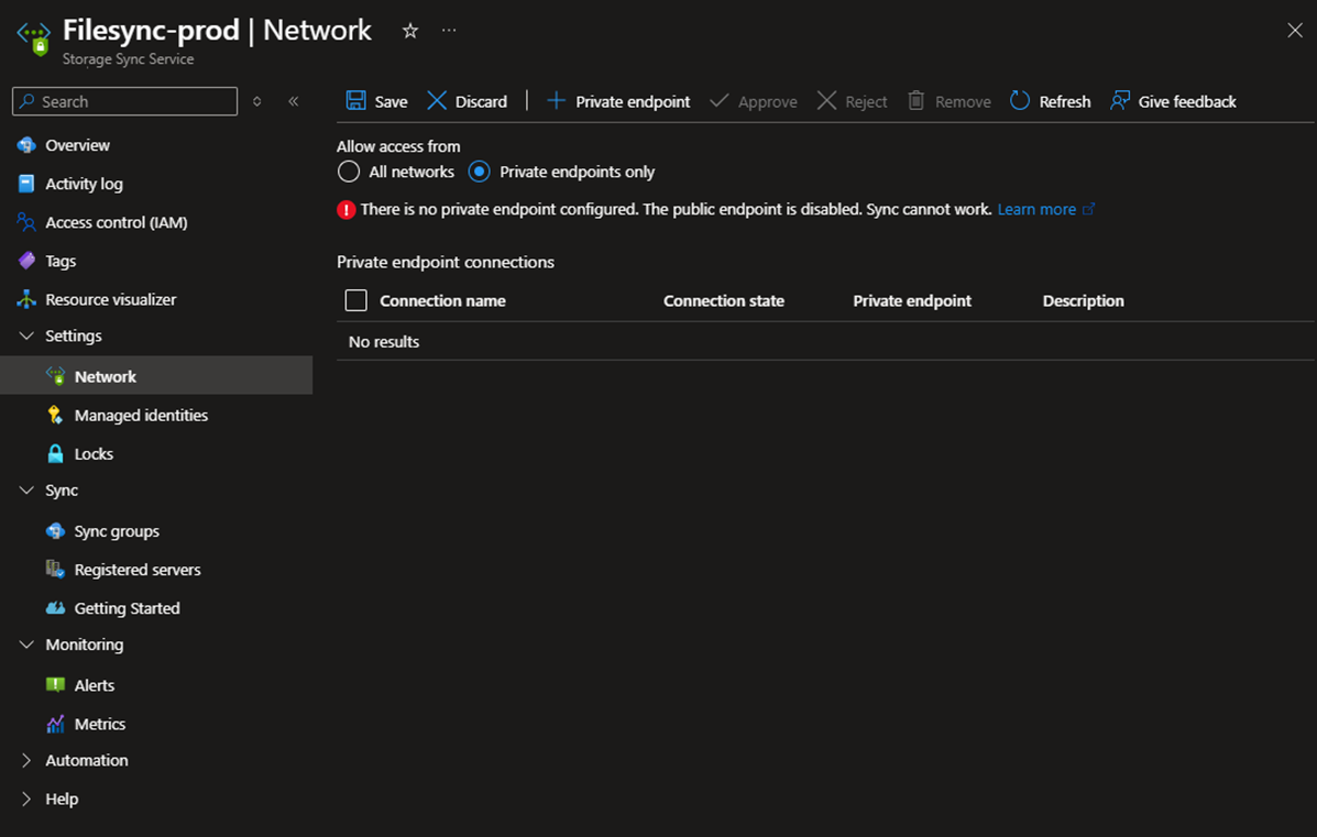 Private endpoint for Storage sync service