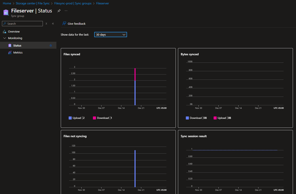 There are many ways to monitor the File sync service, you can use portal to view the health of your Server endpoints in the sync group.