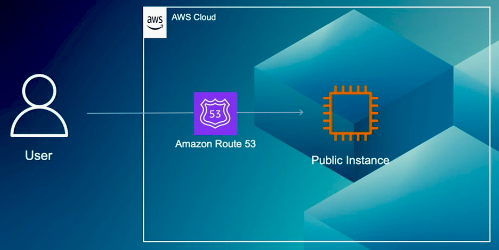 In this first example, the services are hosted on a single public instance with a public IP address, and users directly access the service. You can use Amazon Route 53 with geolocation routing to implement geographic restrictions. This allows you to restrict access for users in specific locations.