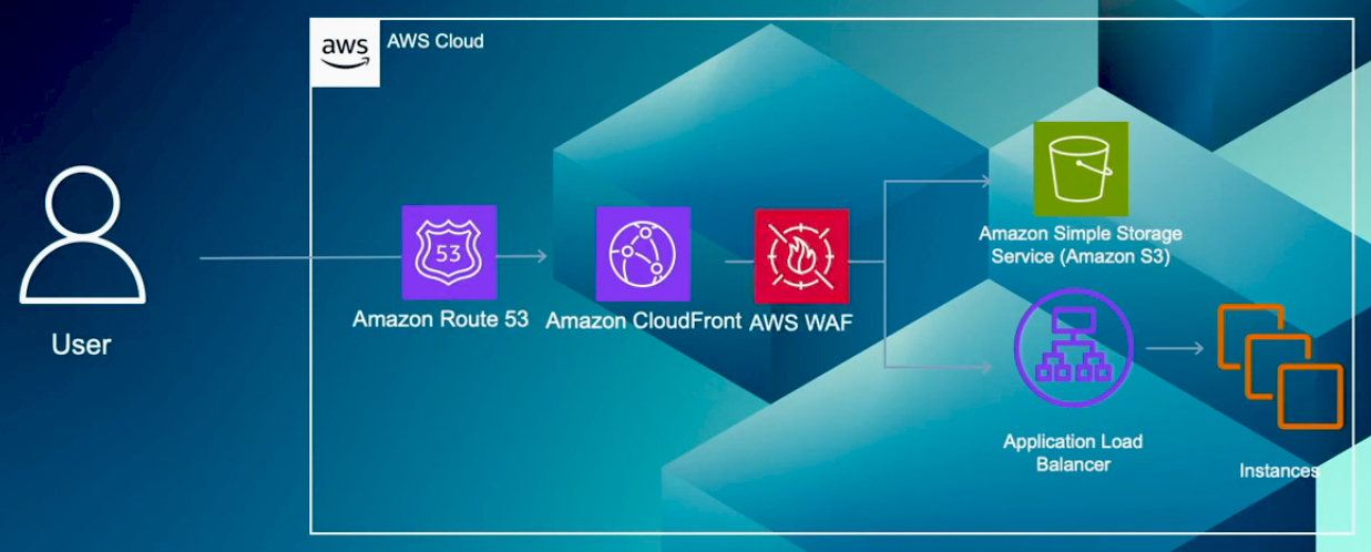 In this second example, the services are deployed on a fleet of instances, which may also include containers running on Amazon ECS or EKS. These services are front-ended by an Application Load Balancer. Here, you can use Amazon Route 53 to implement geographic restrictions and AWS WAF to protect against web attacks such as cross-site scripting and SQL injection. While it is possible to use either service independently, combining them can improve your overall security and access control. For example, if you want to provide services exclusively to users in North and South America while blocking access from two specific countries in South America, using both services simplifies the process. With Route 53, you can create two records, one for North America and another for South America. Then, using AWS WAF, you can configure rules to block access from just the two specified countries in South America.