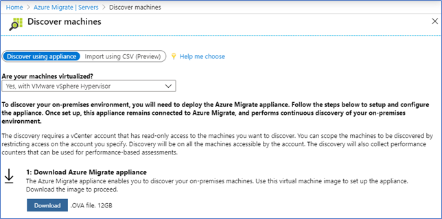 Azure Migrate Server Assessment tool is a lightweight appliance where you need to implement on your on-premise datacenter. it comes as VMware, Hyper-V and Physical appliances, you can download OVA file for VMware, VHD file for Hyper-V and Zipped folder with PowerShell scripts for Physical implementations. For this post, I’m doing the VMware implementation.