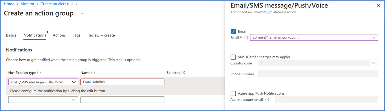 Create an Alert rule and Email notification
