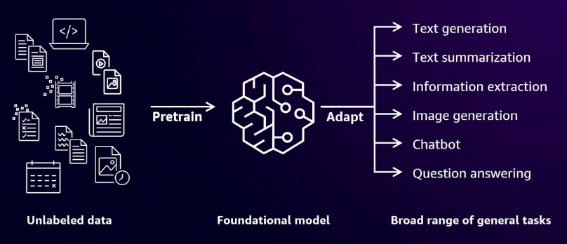 Before foundational models, machine learning was the primary approach. In machine learning, you develop a model and define its specific use case. Based on the problem at hand, you choose between supervised, semi-supervised, or unsupervised learning. In contrast, foundational models use deep neural networks designed to emulate human brain functionality, enabling them to handle complex tasks. For example, these models can generate text, create images, or power chatbot applications. They are pre-trained on large, unlabeled datasets, allowing them to perform a wide range of general tasks such as text summarization, image creation, or answering questions.