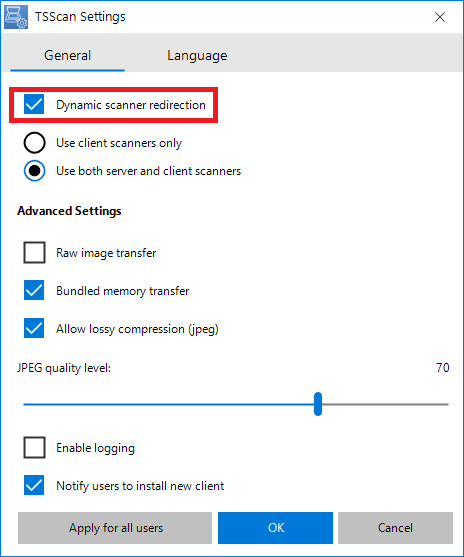 To revert your TSScan 3 to the previous TSScan protocol and usage of the system, you can just un-check the Dynamic Redirection feature shown above. Such a change will result in the scanning behaving as if you still used TSScan 2. All calls issued after the change was made go through the original twain_32_system.dll.